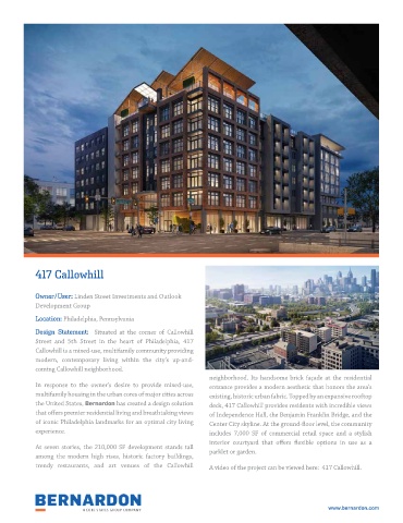 trendy restaurants, and art venues of the Callowhill A video of the project can be viewed here: 417 Callowhill.