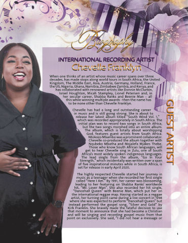 which was recorded appropriately in South Africa. The initial plan was to record two songs in South Africa, but the two songs morphed into an entire album. The album, which is totally about worshipping God, features guest artists from South Africa. Ntokozo Mbambo was a prominent collaborator. Chevelle co-produced the album together with Nqubeko Mbatha and Mojalefa Mjakes Thebe. Those who know South African languages, will get to hear Chevelle sing in Zulu, one of South Africa’s most widely spoken indigenous languages. The lead single from the album, “Go In Your Strength,” which incidentally was written over a span of five inspirational minutes while in South Africa, is set for release in early April 2020.