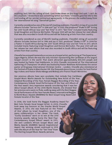 Currently considered as one of the world’s leading psalmists, Chevelle’s string of successful