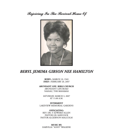 BERYL JEMIMA GIBSON NEE HAMILTON
