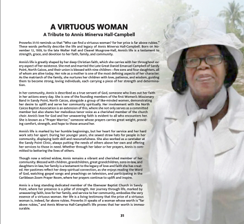 Caicos Baptist Association is an extension of this, where she not only serves as a committed