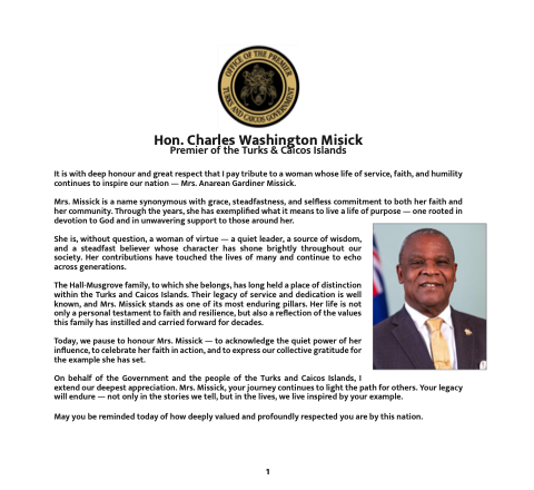 Today, we pause to honour Mrs. Missick — to acknowledge the quiet power of her