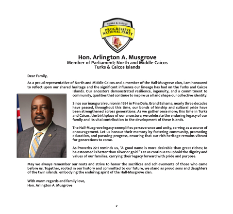 As a proud representative of North and Middle Caicos and a member of the Hall-Musgrove clan, I am honoured