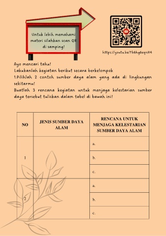 1.Pilihlah 2 contoh sumber daya alam yang ada di lingkungan