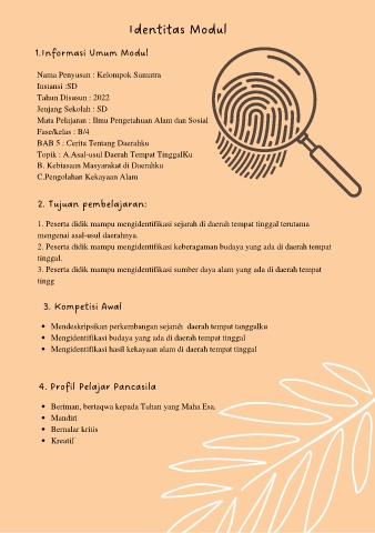 Page 3 - Nama Penyusun : Kelompok Sumatra Instansi :SD Tahun Disusun : 2022 Jenjang Sekolah : SD Mata Pelajaran : Ilmu Pengetahuan Alam dan Sosial Fase/kelas : B/4 BAB 5 : Cerita Tentang Daerahku Topik : A.Tempat Tinggalku Dahulu dan Sekarang