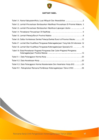 Tabel I.8. Jumlah Dan Kualifikasi Pengawas Ketenagakerjaan Spesialis K3 ................. 13