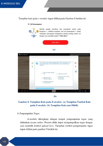 pada E-module, (b) Tampilan Kuis saat Diklik.