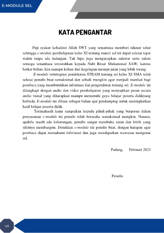 sehingga e-module pembelajaran kelas XI tentang materi sel ini dapat selesai tepat