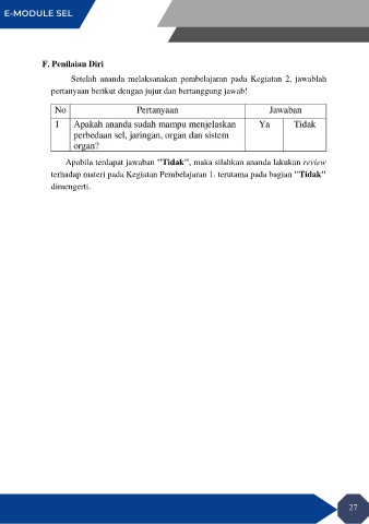 terhadap materi pada Kegiatan Pembelajaran 1. terutama pada bagian ''Tidak''