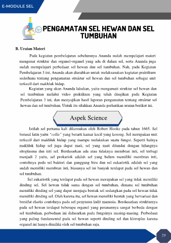 Pembelajaran 3 ini, dan menyajikan hasil laporan pengamatan tentang struktur sel