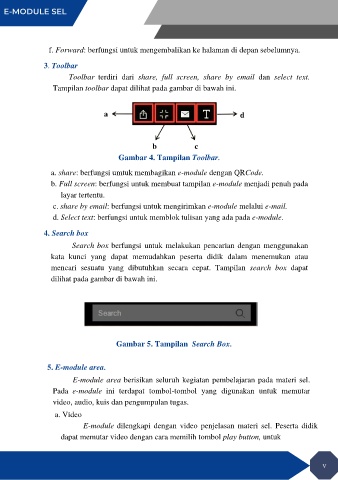 d. Select text: berfungsi untuk memblok tulisan yang ada pada e-module.