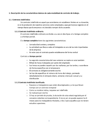 1. Descripción de las características básicas de cada modalidad de contrato de trabajo.