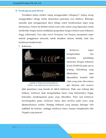 (alat penerima) yang berada di tubuh kelelawar. Pada saat terbang dan