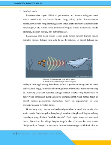 Gelombang bunyi lumba-lumba akan dipantulkan kembali bila membentur