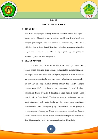 alat-alat khusus yang disebut special service tool (SST). Dengan
