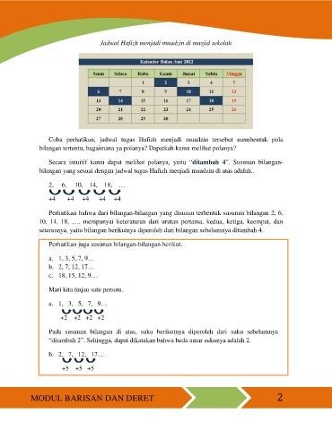 “ditambah 2”. Sehingga, dapat dikatakan bahwa beda antar sukunya adalah 2.