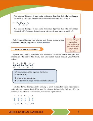 “ditambah (-3)”. Sehingga, dapat dikatakan bahwa beda antar sukunya adalah (-3).