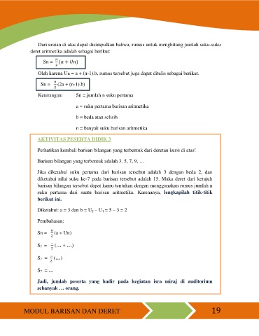 Dari uraian di atas dapat disimpulkan bahwa, rumus untuk menghitung jumlah suku-suku