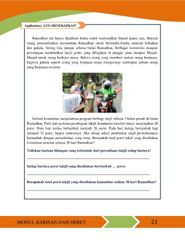 menjadi 32 porsi, begitu seterusnya. Jika setiap sehari pemberian takjil persediaannya