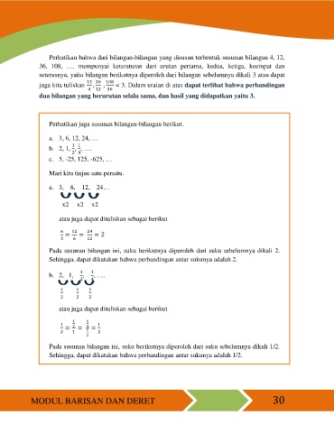 Pada susunan bilangan ini, suku berikutnya diperoleh dari suku sebelumnya dikali 1/2.