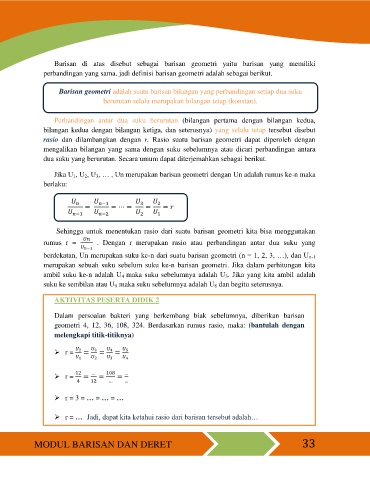 Barisan di atas disebut sebagai barisan geometri yaitu barisan yang memiliki