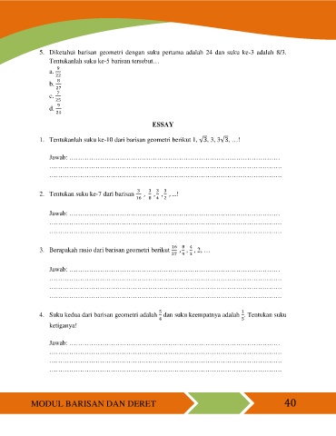 5. Diketahui barisan geometri dengan suku pertama adalah 24 dan suku ke-3 adalah 8/3.