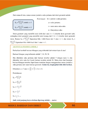 S n = ( ) , untuk r < 1 r = rasio antar suku-suku