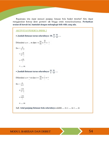 Jadi. total panjang lintasan bola seluruhnya adalah … m + … m = … m