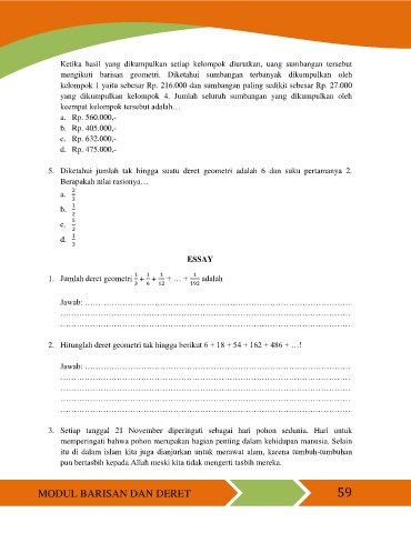 mengikuti barisan geometri. Diketahui sumbangan terbanyak dikumpulkan oleh