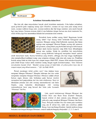 madu, susunan mahkota bunga aster, susunan mahkota dan biji bunga matahari, serta masih banyak