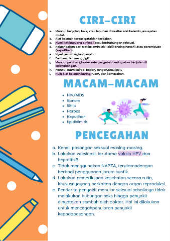 d. Keluar cairan dari alat kelamin laki-laki(kencing nanah) atau perempuan