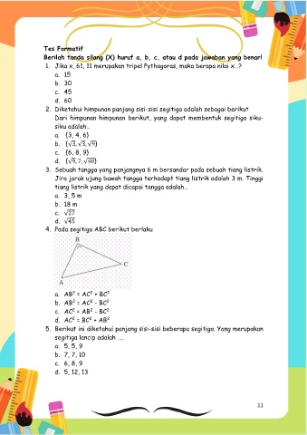 5. Berikut ini diketahui panjang sisi-sisi beberapa segitiga. Yang merupakan