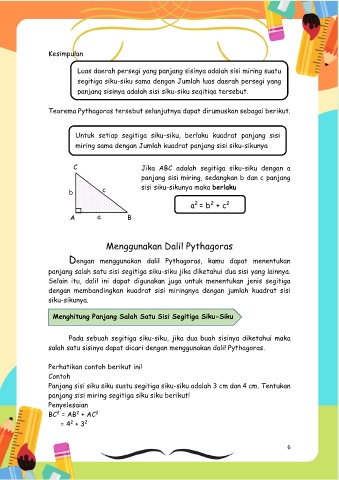 Untuk setiap segitiga siku-siku, berlaku kuadrat panjang sisi