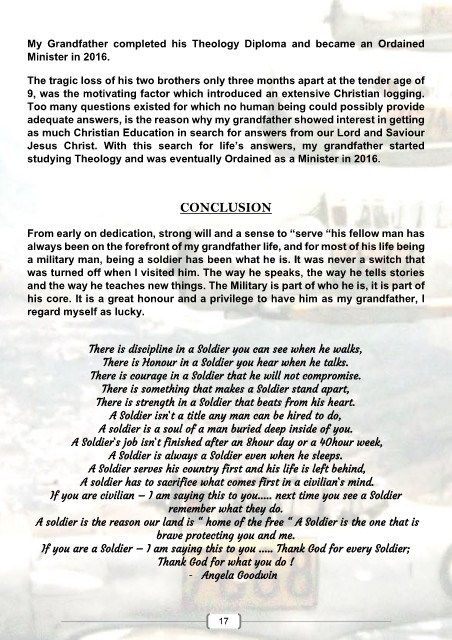 studying Theology and was eventually Ordained as a Minister in 2016.