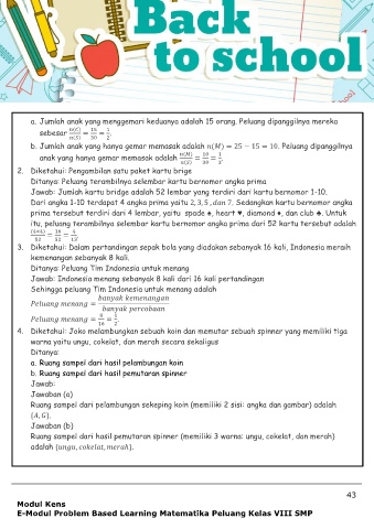 itu, peluang terambilnya selembar kartu bernomor angka prima dari 52 kartu tersebut adalah