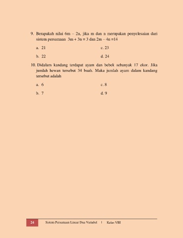 9. Berapakah nilai 6m – 2n, jika m dan n merupakan penyelesaian dari