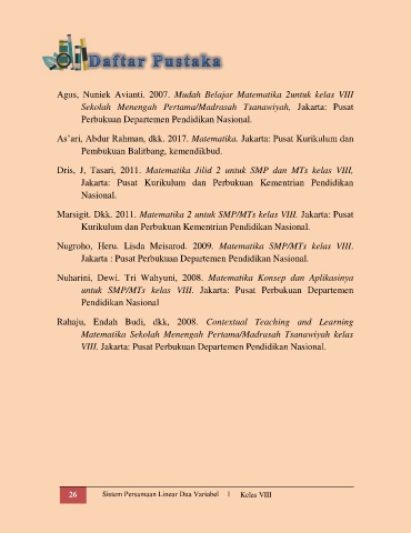 Agus, Nuniek Avianti. 2007. Mudah Belajar Matematika 2untuk kelas VIII