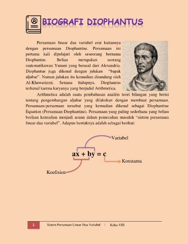 Equation (Persamaan Diophantine). Persamaan yang paling sederhana yang beliau