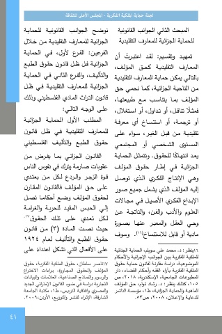 الفرعيـن :الفـرع لأول ،فـي الحمايـة المعـارف التقليديـة كحـق المؤلـف،