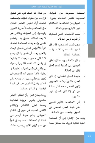 توازن ما بين حقوق المؤلف والمصلحة المعياريـة لتقديـر العدالـة ،وهـي: