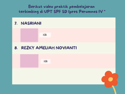 Berikut video praktik pembelajaran terbimbing di UPT SPF SD Ipres Perumnas IV " 7. NASRIANI 8. REZKY AMELIAH NOVIANTI