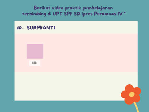 Berikut video praktik pembelajaran terbimbing di UPT SPF SD Ipres Perumnas IV " 10. SURMIANTI