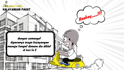 COMIC STREP COMIC STREP COMIC STREP KALAYANGAN PAGAT Hookay,,,,,!!! dengan semangat dipacunya vespa kesayangan menuju tempat dimana dia diklat di hari ke 2