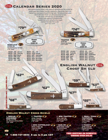 Have a special anniversary, birthday or other milestone to celebrate this year? Why not mark that special occasion with a Calendar Series Knife, exclusively from Shepherd Hills Cutlery? 2020 Calendar Series knives boast a striking 6.5 BoneStag handle. Other features include a unique CASE XX 2020 shield with the month stamped directly into the shield.