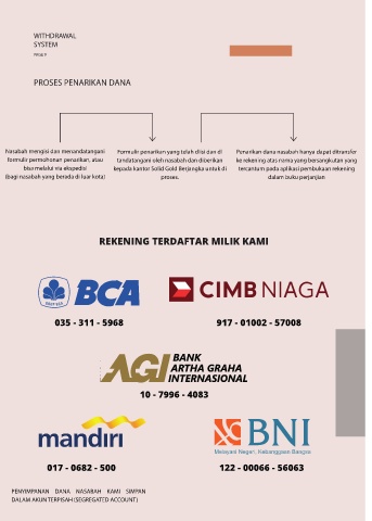 Nasabah mengisi dan menandatangani Formulir penarikan yang telah diisi dan di Penarikan dana nasabah hanya dapat ditransfer
