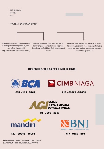 Nasabah mengisi dan menandatangani Formulir penarikan yang telah diisi dan di Penarikan dana nasabah hanya dapat ditransfer