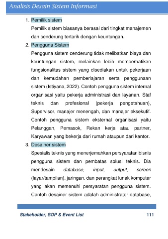 sistem (Istiyana, 2022). Contoh pengguna sistem internal