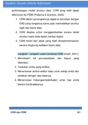 Langkah – langkah untuk membuat CDM (Kadir, 2021):