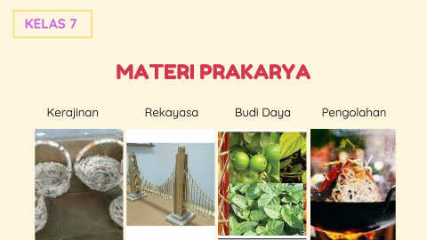 KELAS 7 MATERI PRAKARYA Kerajinan Rekayasa Budi Daya Pengolahan Kerajinan Teknologi Budi Daya Bahan Bahan kontruksi Tanaman Pangan dan Limbah Miniatur Obat Hasil Lunak Jembatan Samping