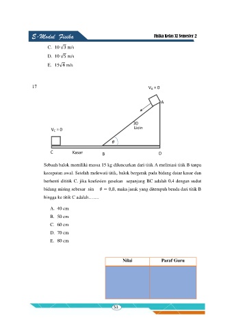 bidang miring sebesar si = 0 8, maka jarak yang ditempuh benda dari titik B